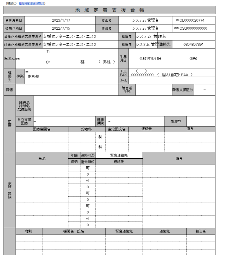 「地域定着支援台帳」は、「人物台帳 > FS > 地域定着支援台帳」から表示・印刷が可能です。